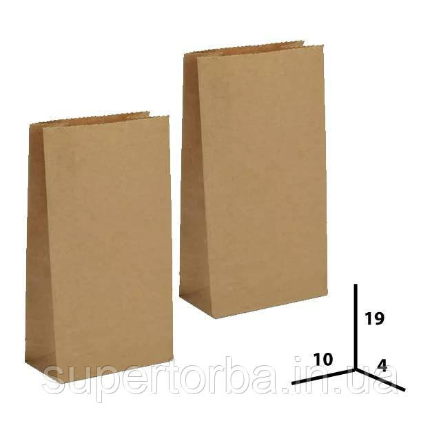 Паперовий крафтовий пакет розмір 10х4х19 коричневий 100 штук