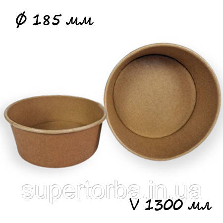 Крафтовий одноразовий посуд без кришки об'єм 1300 мл Ø 185 мм 50 шт/уп.